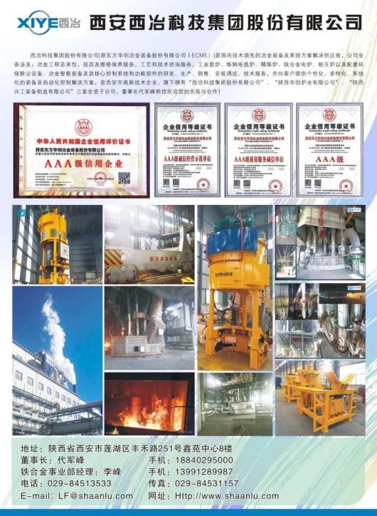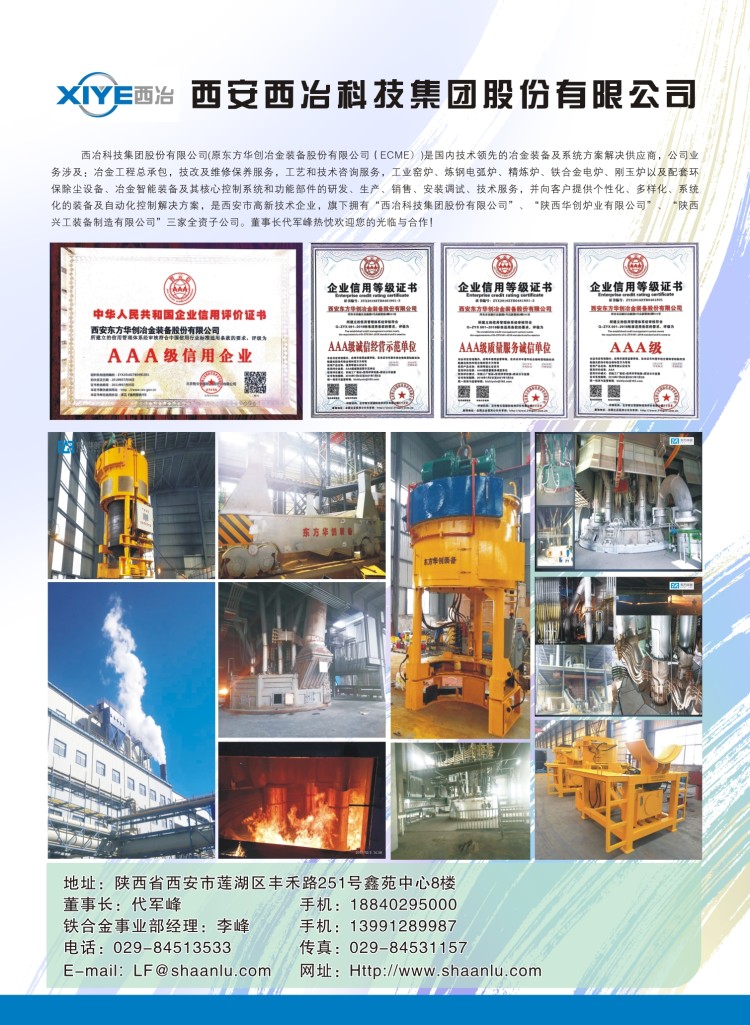 西冶科技集团股份有限公司承接国内外各种冶金工程总承包、技改及维修保养业务,是生产铁合金电炉、铁合金精炼电炉等多种电炉及其环保除尘设备、冶金智能装备及其核心控制系统和功能部件的研发、设计、生产、销售、安装调试、技术服务为一体的专业化企业。董事长代军峰热忱欢迎您的光临和合作!联系电话:董事长代军峰:18840295000,铁合金部经理李峰:13991289987,业务经理冯延伟:18691895654。
