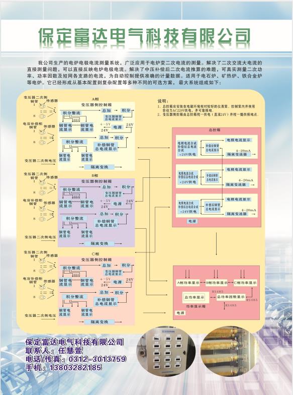 我公司生产的电炉电极电流测量系统,广泛应用于电炉变二次电流的测量。解决了二次交流大电流的直接测量问题,可以直接反映电炉电极电流。解决了中压补偿后二次电流推算的难题,可真实测量二次功率、功率因数及短网各去路的电流,为自动控制提供准确的计量数据。适合于电石炉、矿热炉、铁合金炉等电炉。它已经形成从基本配置到复杂配置等多种不同的可选方案,最大系统组成如下: